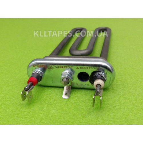 Тен на пральну машину потужністю 1600 W без місця під датчик ; на гумовому ущільнювачі є так званий бортик . Напруга - 220V. Довжина тена (від металевих сіт.пластини) L = 175 мм Виробництво – Туреччина. Відмінна якість!!!