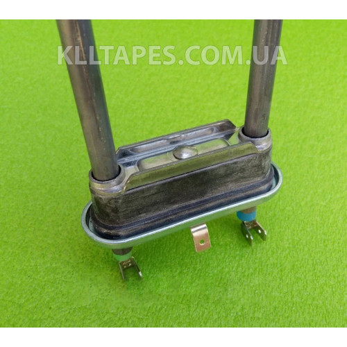 Тен для пральної машини потужністю 2350 W без отвору під датчик на металевій пластині; на гумовому ущільнювачі є так званий БОРТИК. Використовується в певних моделях пральних машин.
