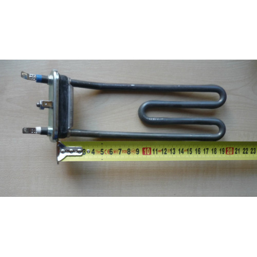 Тен ГНУТИЙ на пральну машину потужністю 1950 W, з довжиною тена L=200мм (від металевої пластини) без місця отвори під датчик. Тен загнутий вгору на відстані 5-6 см від металевої пластини. Тэн використовується в пральних машинах Ardo та ін. моделях.