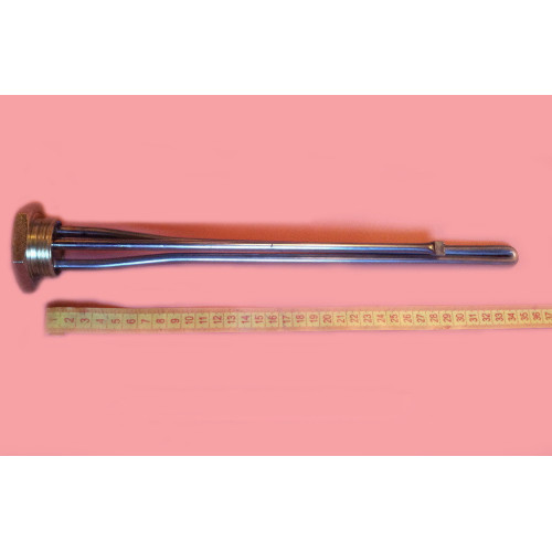 Тен прямий з НЕРЖАВІЙКИ потужністю 1200 W з різьбленням 1 1/4" (дюйм з чвертю або 42мм) з трубкою під терморегулятор. Такий тэн використовується спільно з терморегулятором для чавунних батарей, радіаторів і інших ємностей з внутрішнім різьбленням 1 1/4" (дюйм з чвертю або 42мм). Різьбовий штуцер тена виготовлений з ЛАТУНІ. В наявності тени з ПРАВОЮ і ЛІВОЮ різьбою (ліва різьба ― на 5 грн. дорожче від вказаної ціни). Довжина тена (з різьбленням) = 340 мм. Виробництво ― Balcik - FER, Туреччина.