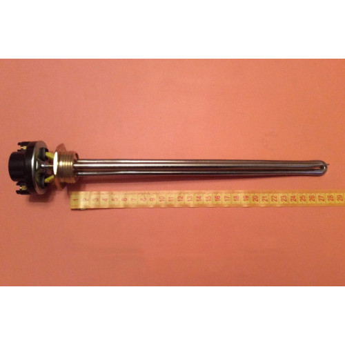 Турецький батарейний тен (з нержавіючої сталі) потужністю 300W на різьбі 1" (один дюйм або 32мм) в комплекті з італійським терморегулятором RTM 15А (або RTR 20A) для використання в алюмінієвих та інших біметалічних батареях, радіаторах, де використовується внутрішня різьба 1" (один дюйм). В наявності є батарейні тени з ПРАВОЮ різьбою.
