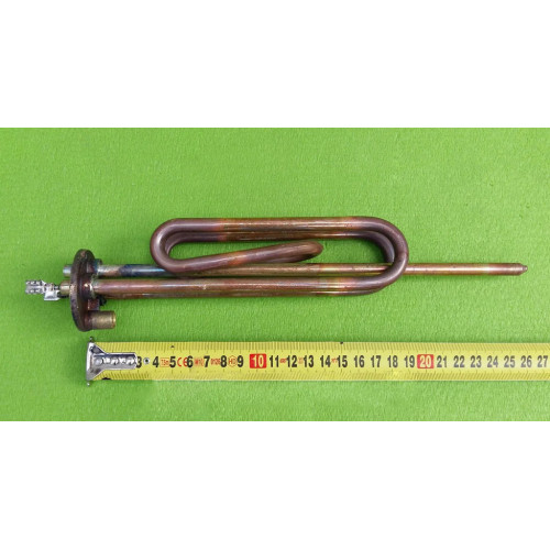Тен МІДНИЙ двічі загнутий для котла потужністю 2000W на фланці Ø48мм (з місцем під анод М6) з подовженими ніжками (контактами). Тэн використовується разом з відповідним терморегулятором в бойлерах Ariston з овальним фланцем та ін.