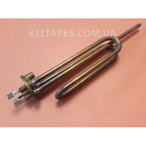 Тен гнутий МІДНИЙ для бойлерів типу Ariston потужністю 2000 W на фланці Ø48мм (на подовжених контактах-клемах), з місцем під анод М6.