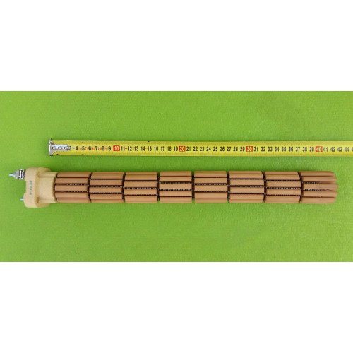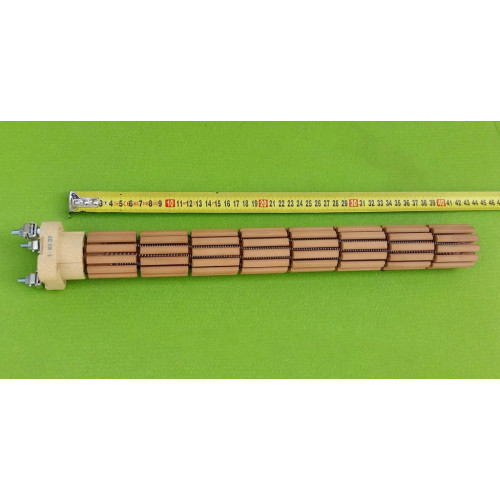 Сухий СТЕАТИТОВИЙ тен потужністю 2400W - 1200W (складається з двох спіралей потужністю 1200W) / артикул ER 12002400T Atl циліндричної форми "з відкритими спіралями" використовується в бойлерах Atlantic Steatite Cube S4CM, Thermor Steatite Cube S4CM, де він вставляється в спеціальний шестиболтовый фланець-колбу під сухою нагрівальний елемент. Діаметр стеатитового тена = 47 мм. Довжина циліндричної частини Тена = 410 мм (заглибна довжина). Загальна довжина (з контактами) = 450 мм. Виробництво - Atlantic, Франція (ОРИГІНАЛ).